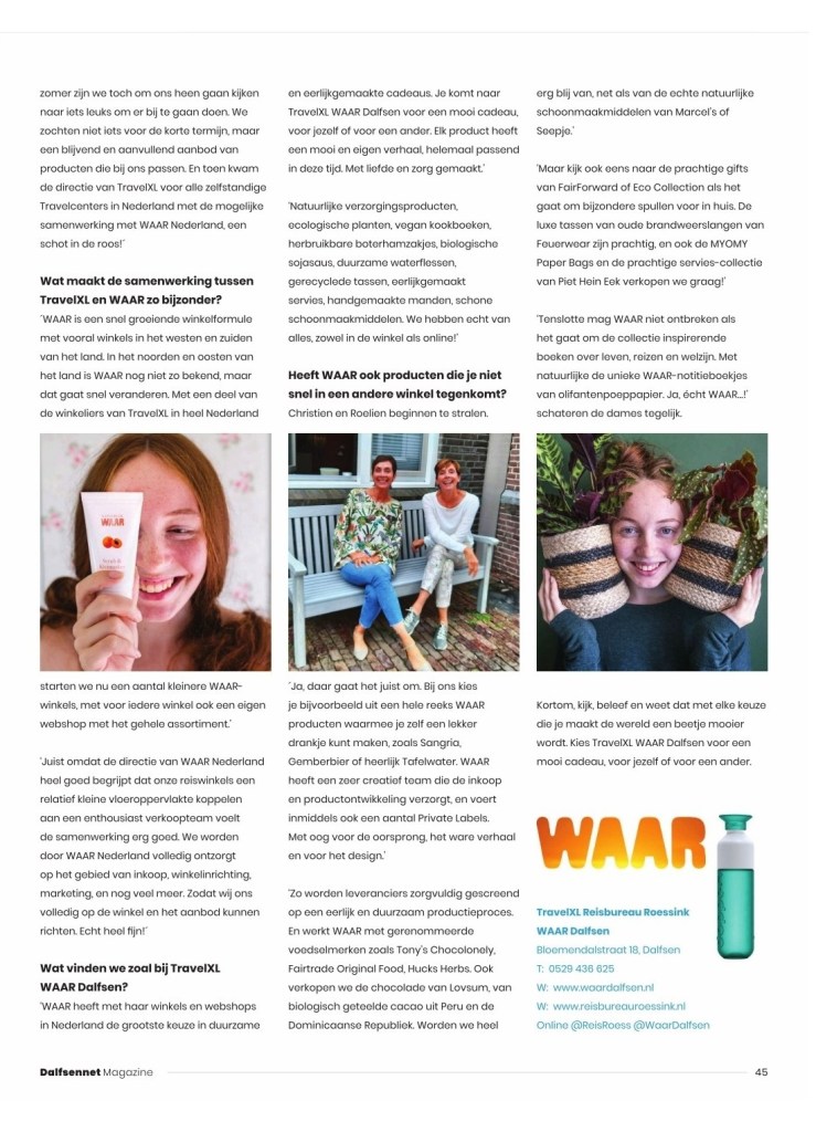 Deze maand staan we met een heel leuk artikel in DalfsenNet Magazine. We kregen de ruimte om uit te leggen waarom we zo trots en blij zijn met WAAR Dalfsen, en wat onze verwachting voor de reiswereld in het nieuwe jaar is.